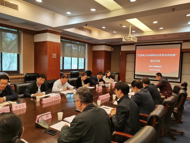 2021年4月20日,由ty8天游平台登录工程学院承办的“江苏电力市场研究与应用合作机制成立大会”在东南大学榴园宾馆顺利召开,该合作机制由江苏省电力交易中心发起,国网江苏省电力有限公司经济技术研究院、国电南瑞科技股份有限公司、中国电力科学研究院电力自动化研究所、ty8天游平台登录工程学院电力经济技术研究所共同响应成立,合作机制主要针对江苏电力市场运行情况开展分析、研究;收集国内外电力市场运营动态,定期发布市场运营分析报告;研究国内外电力市场学术、工业界动向,定期撰写江苏市场建设研究报告;联合组织跨界(学术、工业)电力市场分析讨论会,参与江苏电力市场相关调研,促进江苏电力市场健康发展。机制在东南大学设置工作秘书处,采用例会制,制定年度工作计划,以工作层面交流合作为主。